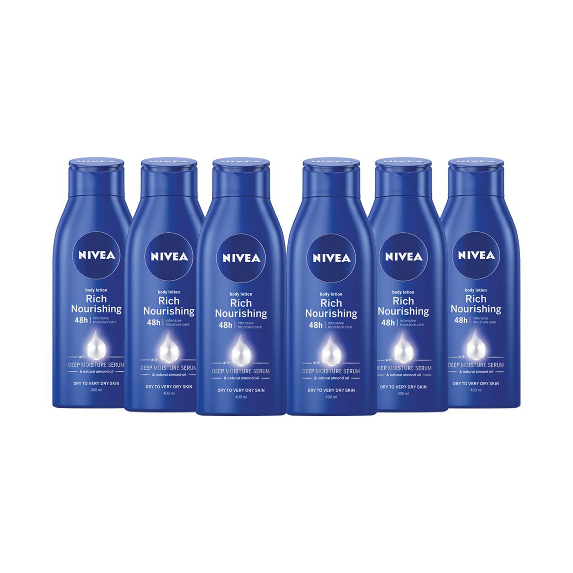 Indulge in deep hydration with the Nivea Rich Nourishing 6-pack. Each 200ml bottle is enriched with nourishing ingredients to provide long-lasting moisture and care for your skin, leaving it soft and smooth.